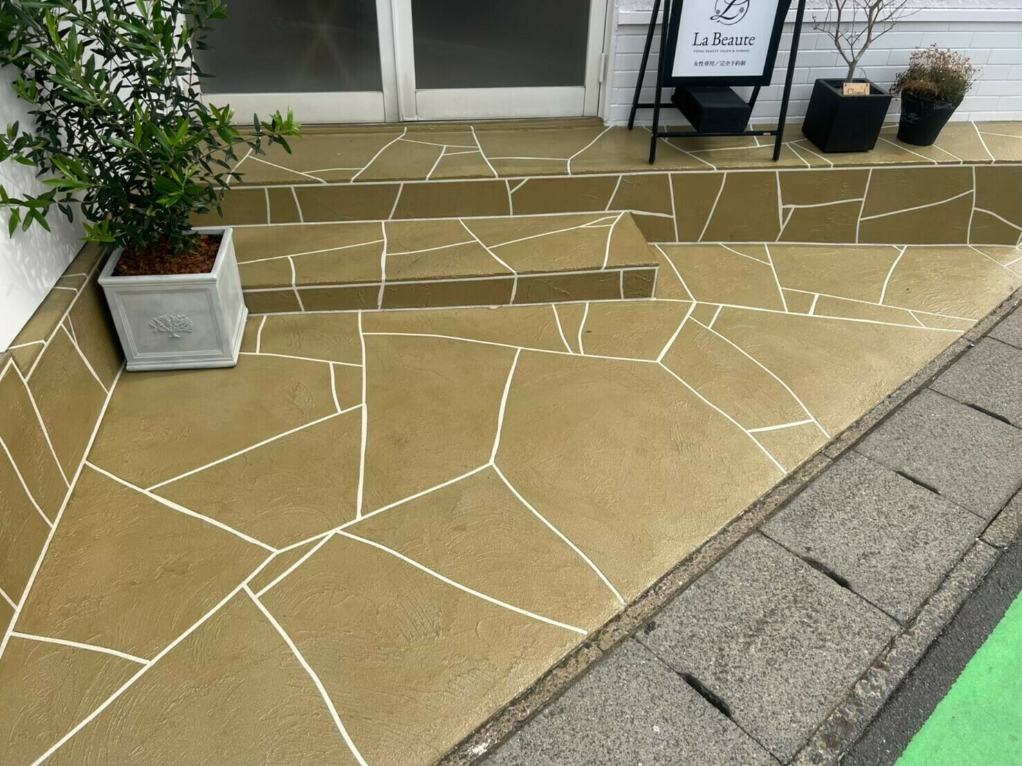 一般的なモルタル素材より柔軟なものを使用しますので、デザイン性が高いだけでなく、モルタルにありがちなひび割れが起きにくく綺麗が長持ちします✨