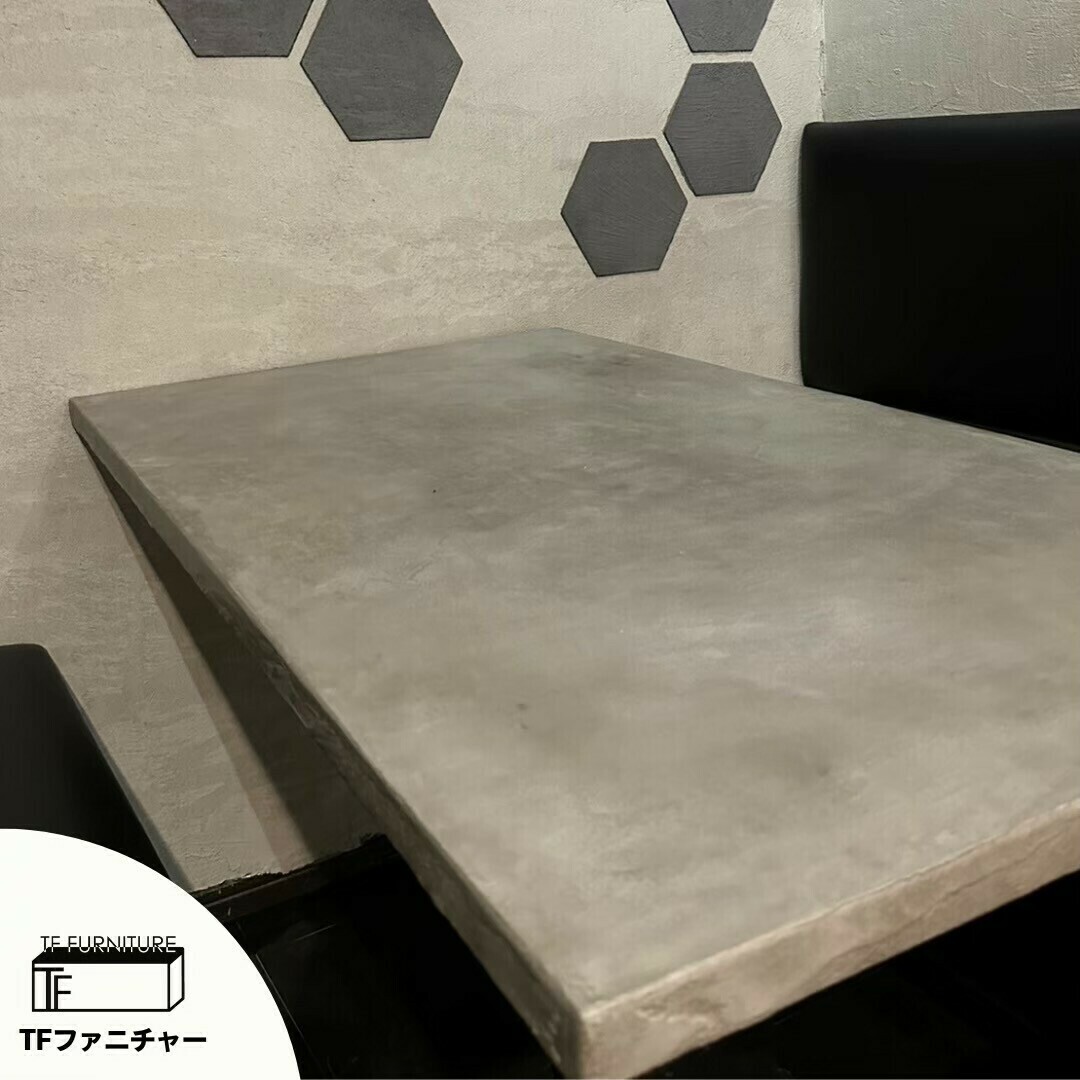 キッチンや洗面所などの水回りでも、気を遣わずに使えるモルタル家具。ダイニングにもおすすめです◎